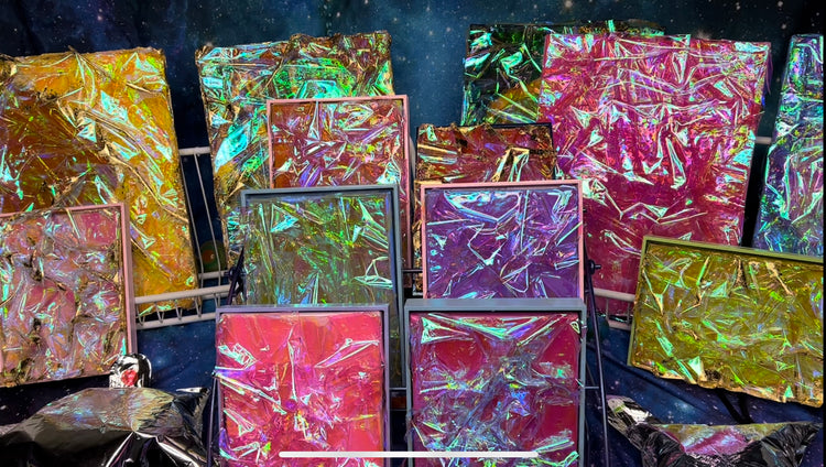 LARGE CRYSTALLIZED SLICES OF THE FABRIC OF SPACETIME ITSELF. BROUGHT TO YOU THROUGH CUTTING EDGE CELLOPHANIFY TECHNOLOGY DEVELOPED BY FROM STRANGE PIECES.
